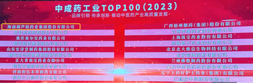 会上,还发布了“2023中成药工业TOP100”榜单,304am永利集团药业集团荣耀上榜。